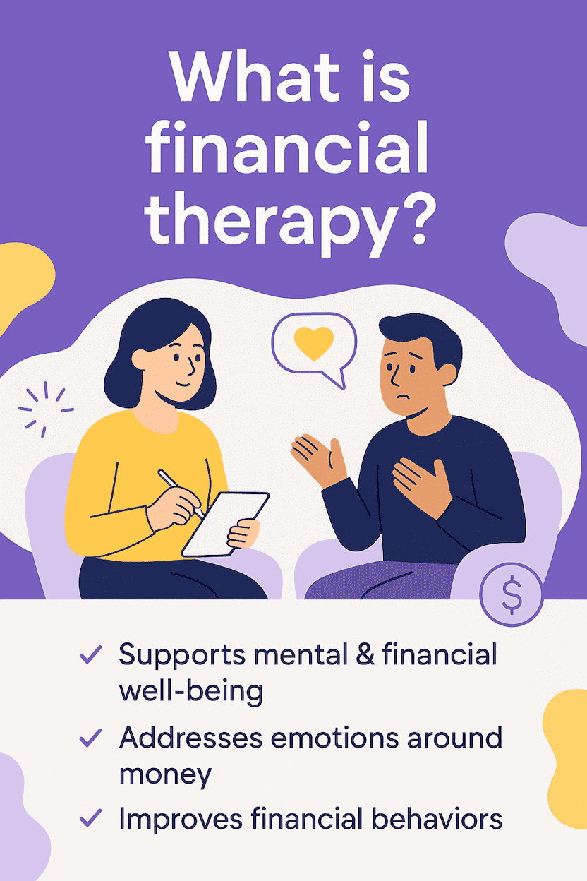 Financial therapy addresses the emotional, family, and anxiety-related aspects of money, not just the math. It's crucial for students facing debt and financial pressure, offering tools for debt anxiety, family conflicts, and healthier habits.